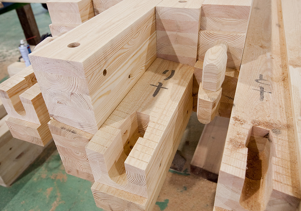 プレカットのメリットの1つは、人の技術によらない安定した仕上がりです。そのため当社の4つの工場には高性能な機械を導入しています。最新設備の導入で生産能力もアップし、平均8,000坪(約230棟分)という地域トップクラスの月産加工量を誇っています。