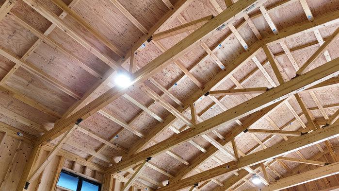 - 木のぬくもりを感じられるように、屋根に構造用合板を使用しています。